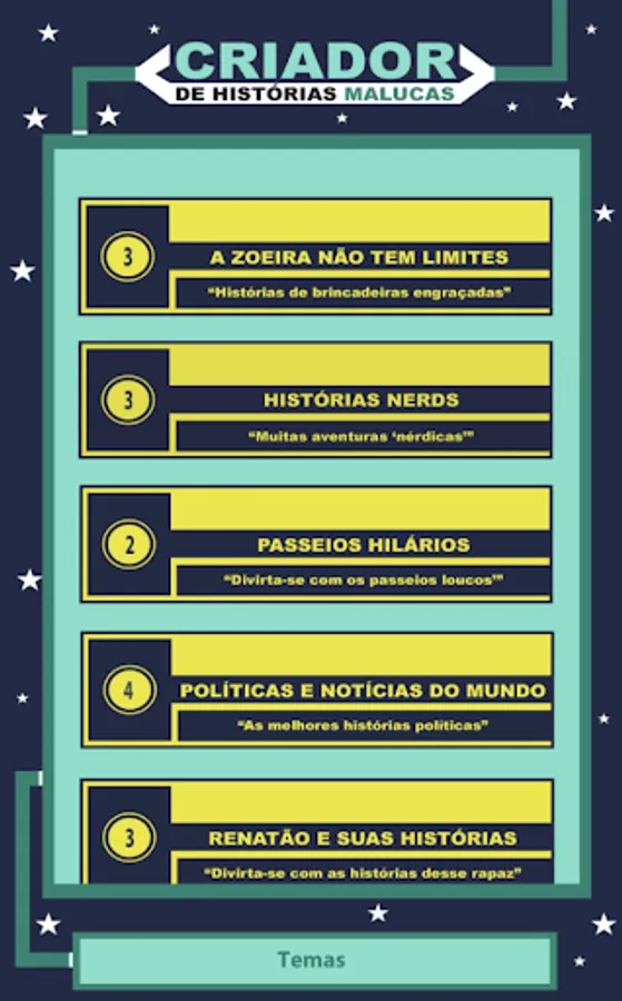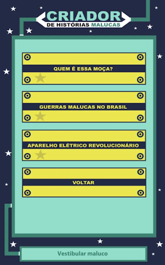 How is your day today? How about a little laugh? Laughing does good, does not it? Creator of Crazy Stories is the only application in this style in the Portuguese language, in it you can have fun with several crazy stories, from crazy questions of college entrance to stories of crazy romances. The most fun is that each story will be filled with things from your head, in the style of Mad Libs, famous wordplay in the US, and this will make each story unique to each person. Download and try.