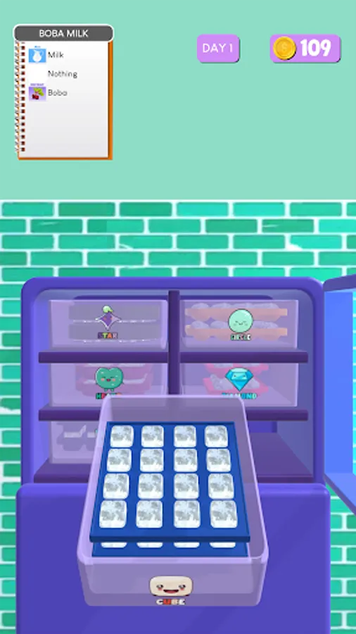 People are coming to your shop with an issue, someone wants to lose weight, someone wants to gain weight, someone wants a skin cleansing juice, someone wants to beat the heat, some one wants to be the purple grimace monster you are not just a juice maker but also a mixologist master who will guide them which drink will solve their problem. So first, you can choose from a variety of aesthetic glassware, from classic glass, karafe sets, boba tea cups, iced coffee glass, kawaii tumbler cups, mushroom glasses, mukbang style glasses to quirky mason jars and so much more. They can then add ice from the biggest collection of ice cubes stocked in ice drawer following an oddly satisfying process pop it for pouring and visual ASMR mixology for mixing, infused with healthy detox mint, lemons, berries for an additional blast. Open the ice drawer Pop the cubes into glass with a soothing, satisfying and fidget pop it mold. Then add fruit, magical syrups and other garnishes to their drinks to make them look as appealing as possible.