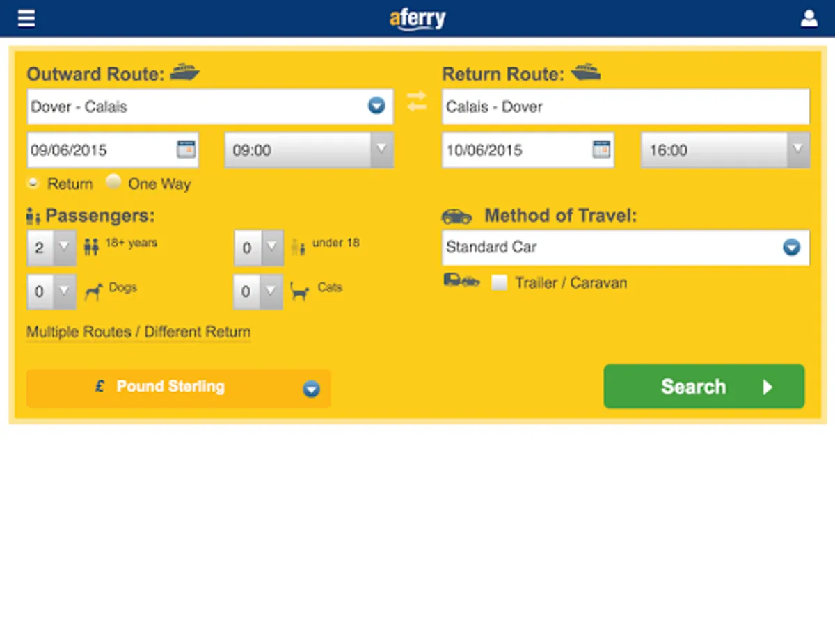 aFerry saves you money and time by searching all ferry crossings to find the cheapest and most convenient crossings, fast.