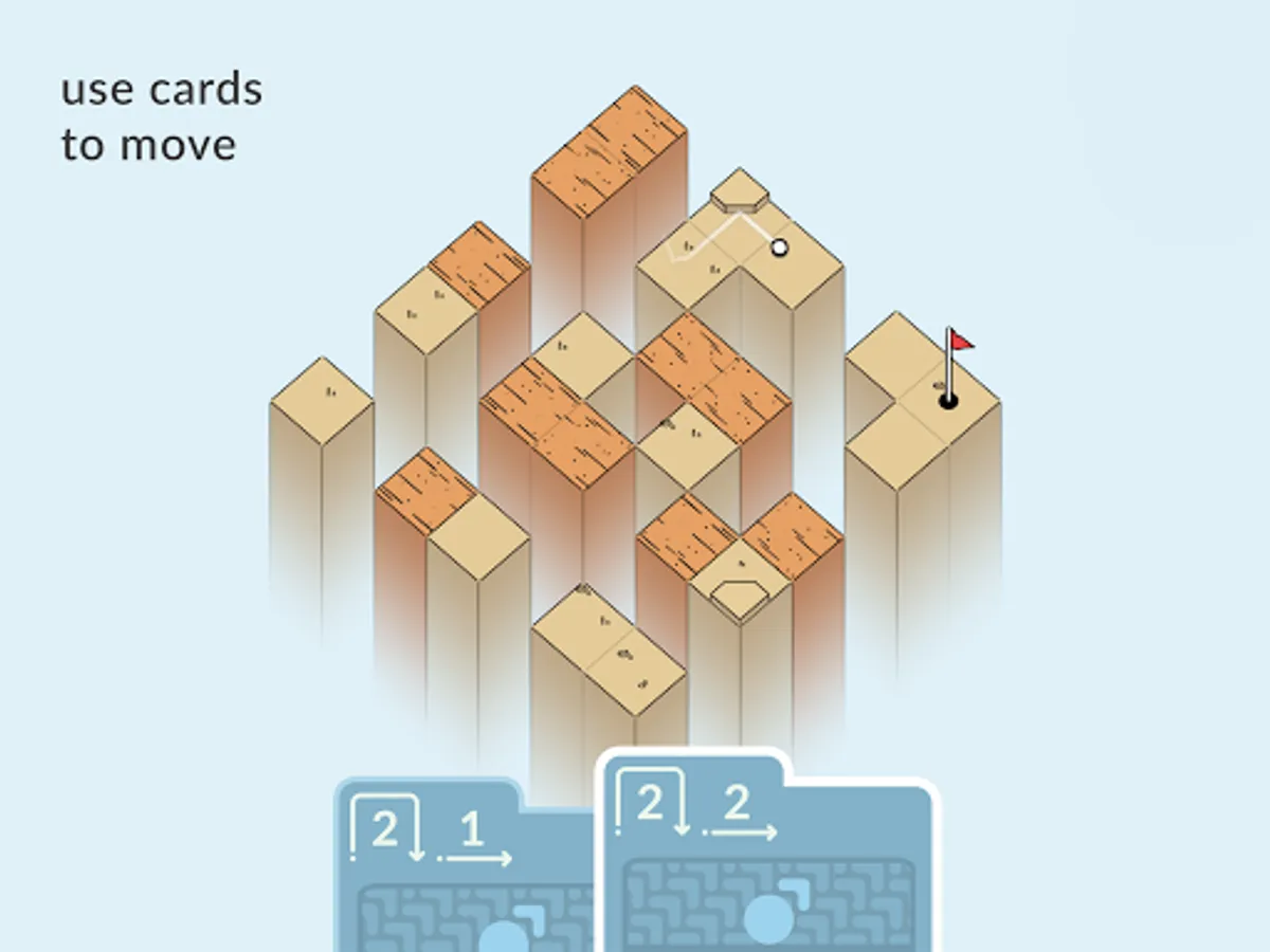 Golf Peaks is a tiny puzzle game where you climb mountains by playing golf. Use cards to move the ball, solve over 120 handcrafted levels and conquer the summits!