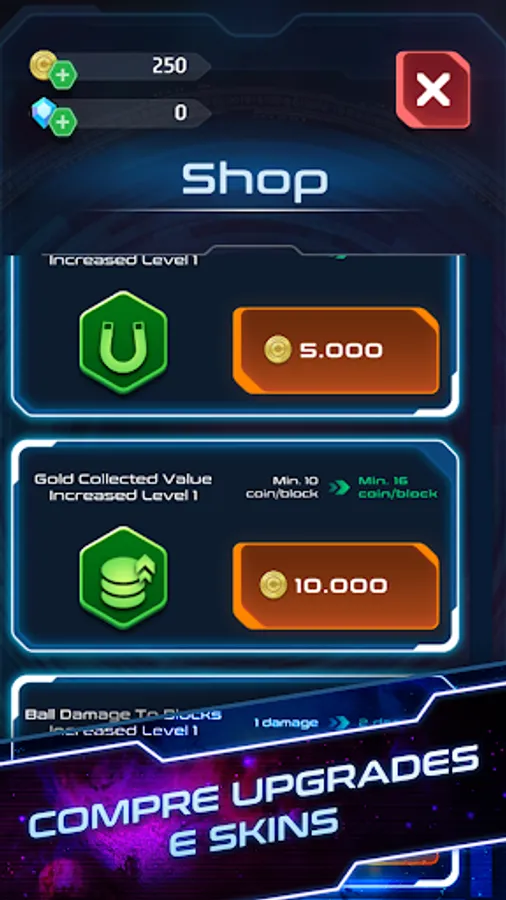 Classic Arkanoid gameplay expanded with unique mechanics. You'll encounter enemies, black holes, realistic physics, power ups and much more as you break blocks to pass levels and break your own records. 32 unique stages, with balanced difficulty progression and adding more stages periodically. Collect resources to buy upgrades and skins.