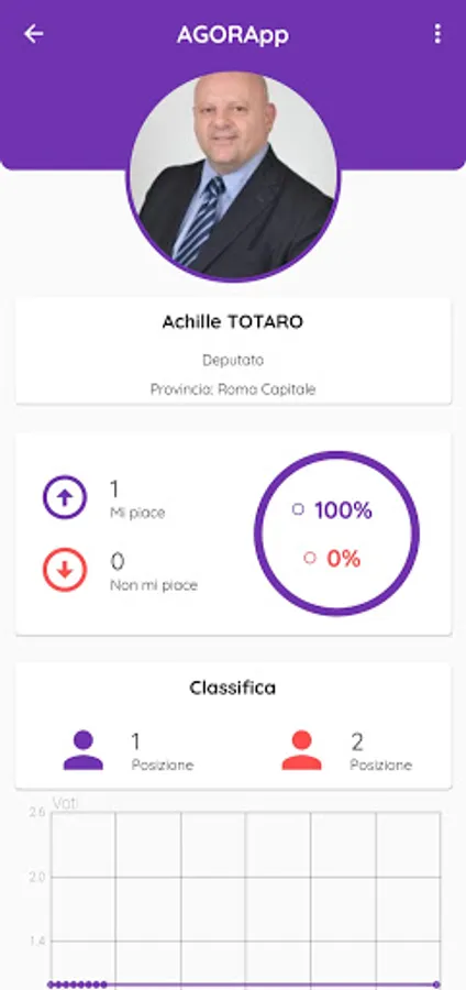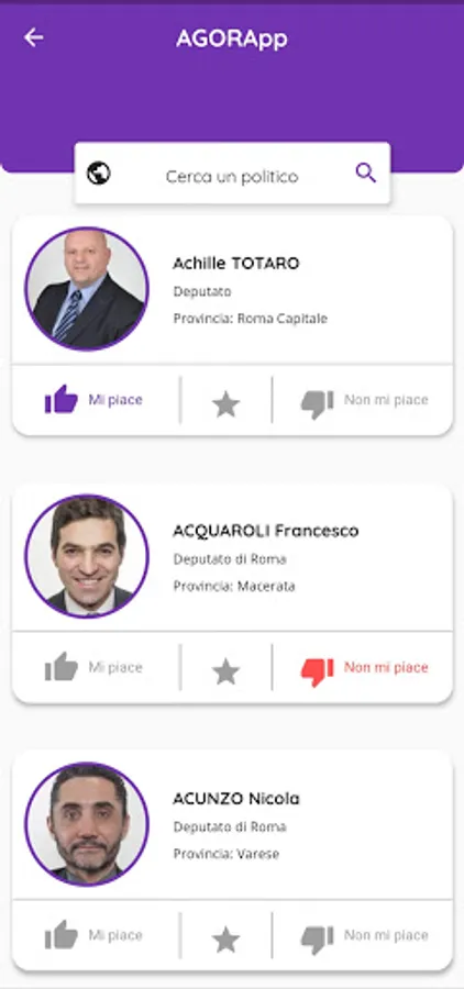 With AGORApp you can express a positive or negative opinion, anonymously, on all the Italian politicians present in your database.