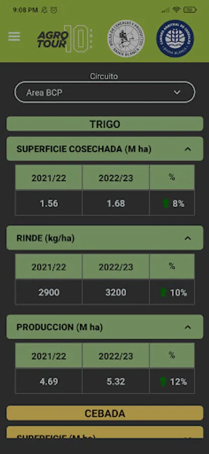 Agrotour is a strategic journey through the region of influence of the Bahía Blanca Cereal Exchange. For two days, we go through three parallel circuits with representatives from the entire agribusiness chain. We survey more than 220 batches to provide useful and accurate information for the sector on the status, production and quality of wheat and barley crops, before harvest.