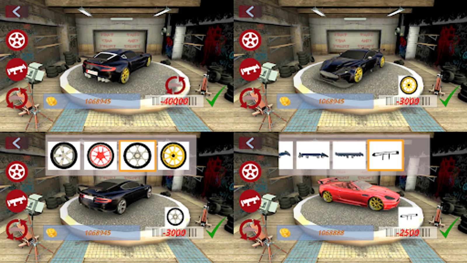 You get points if you go fast or do good drifting moves. With these points, you can get fuel from the fuel station, change colors, buy one of the different car models and continue the fun by buying wheels or spoilers.