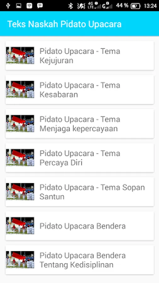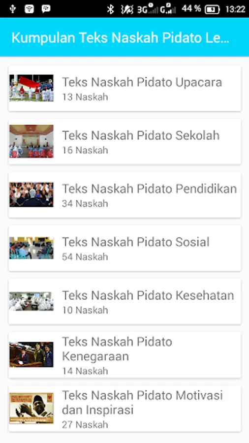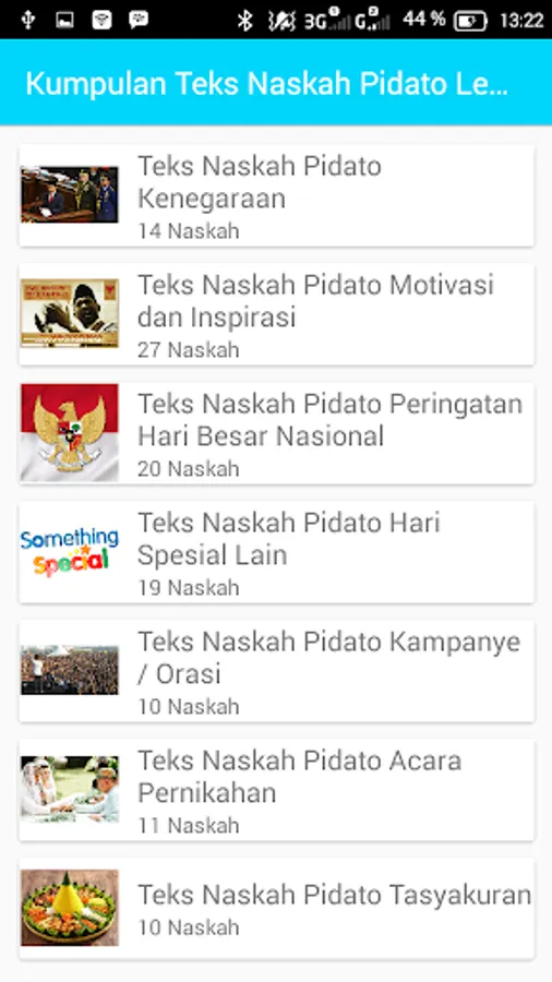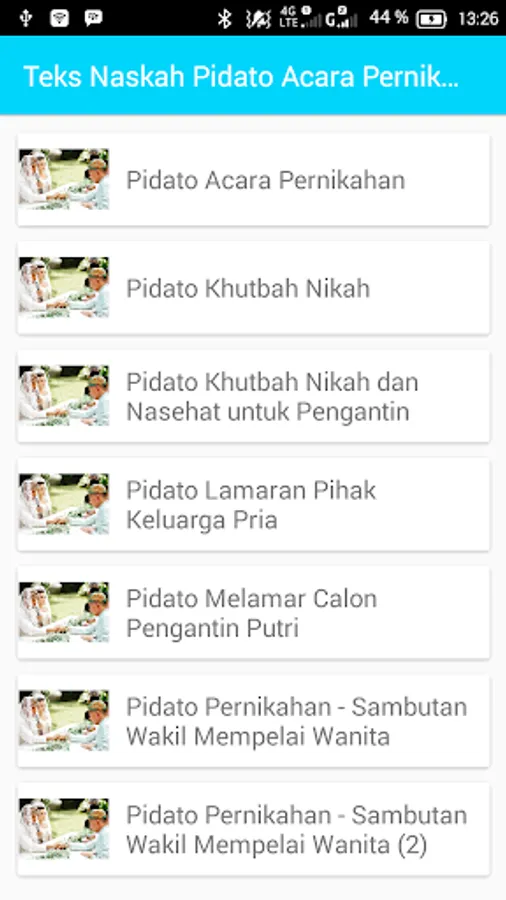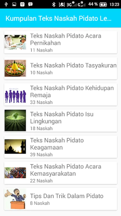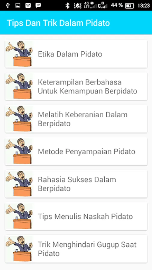 Text Speech Application Complete set contains a wide range of text to speech. For those of you who need a speech to be shown in certain events, such as ceremonies, social events, weddings, reception, tasyakuran, or school work, you can download and install this application. In this application there are also tips and tricks in a speech in order to practice your skills in berpidatto.