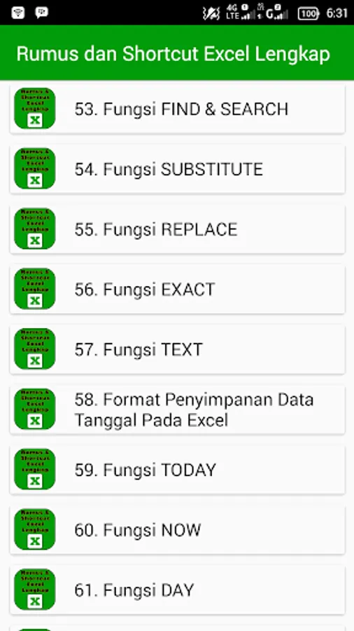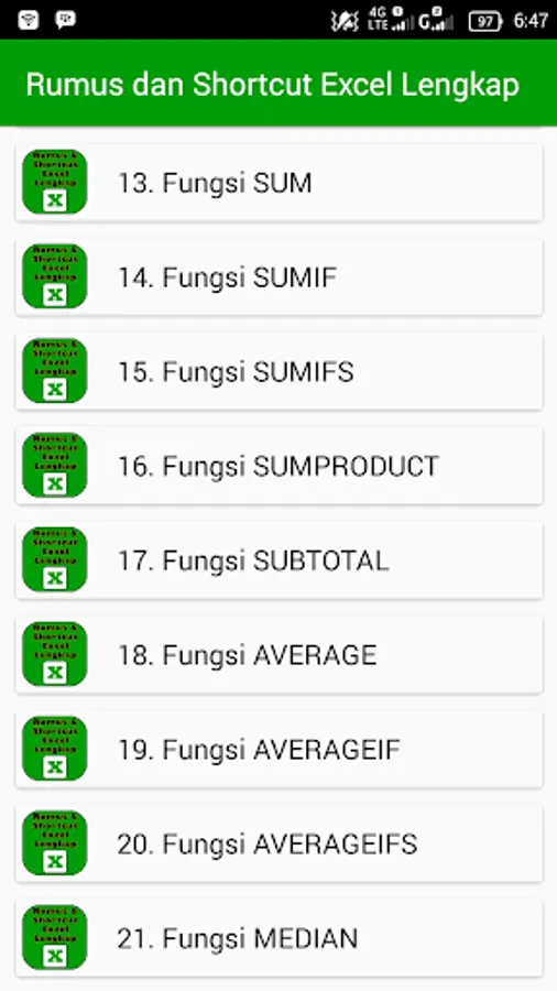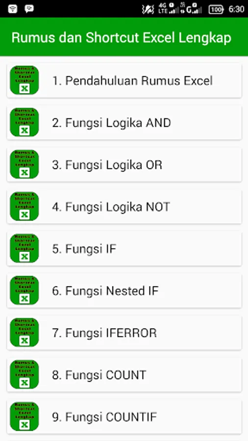Excel Complete Formula & Shortcut Application is an application that contains a tutorial on how to use excel formulas and functions. This application aims to facilitate us in learning Excel Functions and Formulas.