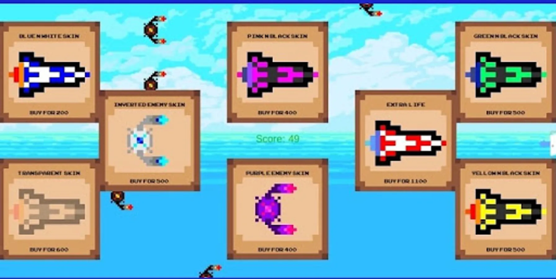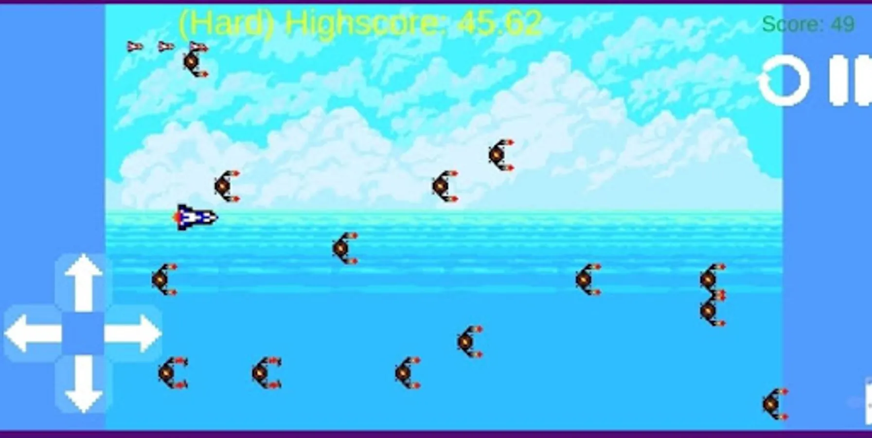 you play as a rocket trying to dodge incoming enemy mines for as long as possible while also trying to collect stars to increase your score and if you're lucky you might collect an oil barrel and get an Extra Life. Get Highscores and buy new Skins for you and the enemy!