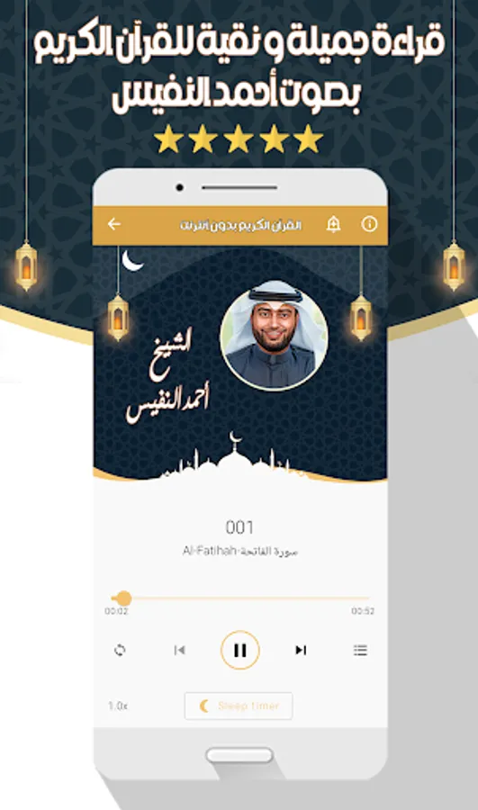And if you are a fan of listening to Sheikh Ahmed Al-Nafees in reciting the Noble Qur’an, the Ahmed Al-Nafees - Quran without Net application provides you with listening to the surahs of the Noble Qur’an in the voice of Ahmed Al-Nafees mp3 for free.