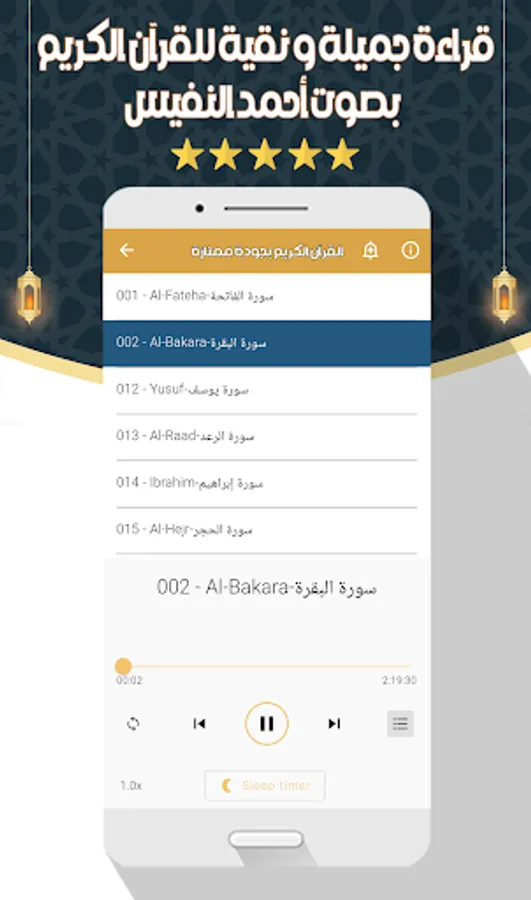 After downloading the application, you can listen to the surahs of the Noble Qur’an with the voice of Ahmed Al-Nafees for free, anytime and anywhere with ease.