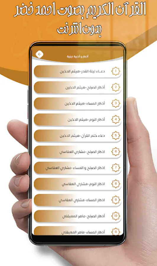 It is an application that allows users to hear the surahs of the Noble Qur’an with the voice of reciter Ahmed Khadr without the need for an internet connection. Users can enjoy recitations and listen to various surahs of the Noble Qur’an through their mobile phones or tablets with ease.