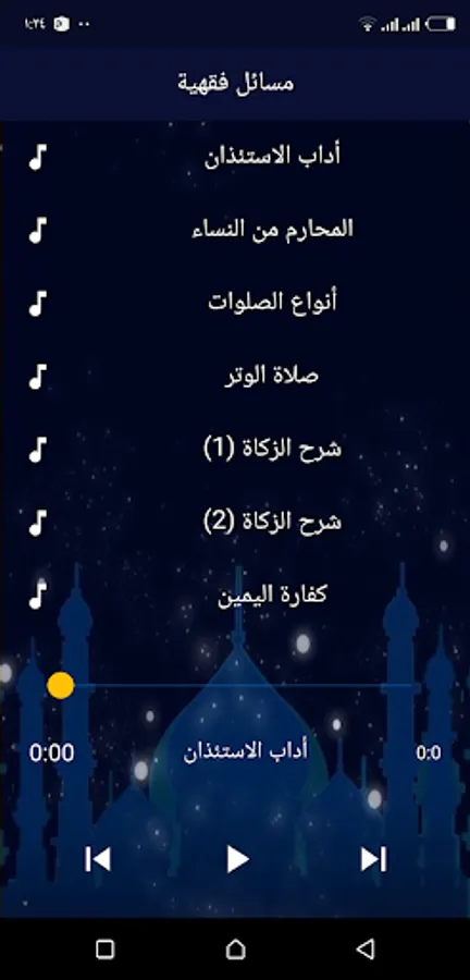 The application is divided into four parts, the first part is humiliating Quranic recitations, while the remaining three parts need to be Internet, the first part has concepts that must be corrected and contains more than 19 concepts, and the second part must be corrected by Islamic speeches and lectures, and it contains more than 30 sermons and lectures, and the third part is religious lessons It contains more than 45 lessons