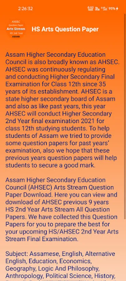 Notice: This is Not AHSEC Official Arts Question Paper Provider App. Just, we have collected these Question Papers for you to prepare the best for your upcoming HS/AHSEC 2nd Year Arts Stream Final Examination.