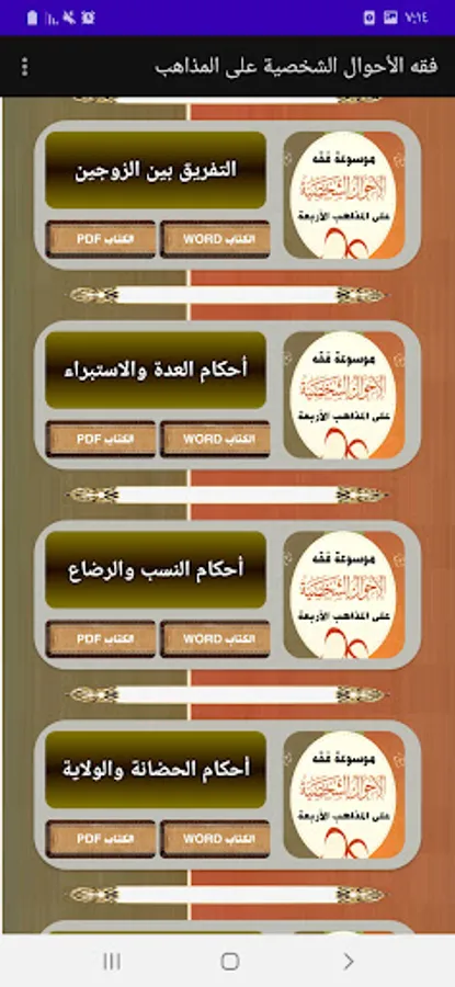 The application works without the Internet, and each chapter is divided into two parts. The first is a section written in Word that can be copied from, and the second is in PDF format, and has the feature of saving the page and night mode.