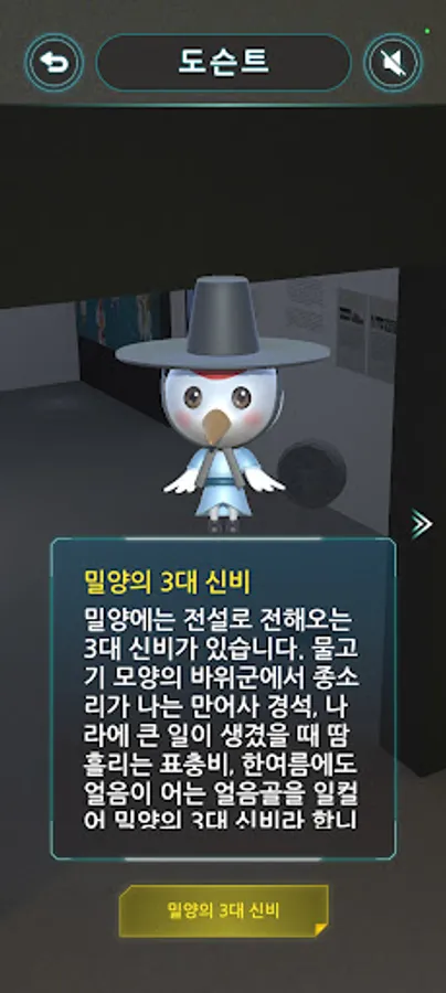 -Augmented Reality Museum: If you visit the actual Miryang City Museum and run the app, you can enjoy various augmented reality contents while visiting the actual museum. Don't be surprised that people carrying smartphones all over the museum are spectators, not smombies!