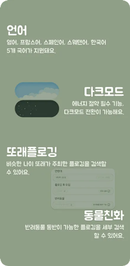 플로깅에 반려동물 동반이 가능한지, 플로깅이 끝나고 모임이 있는지, 주최자가 내 또래인지 등을 선택할 수 있어서,