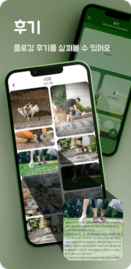 플로깅 이벤트를 주최하고 참여하는 기본 기능과 함께, 참여자들의 리뷰와 프로필을 보는 재미 요소도 담아봤습니다.