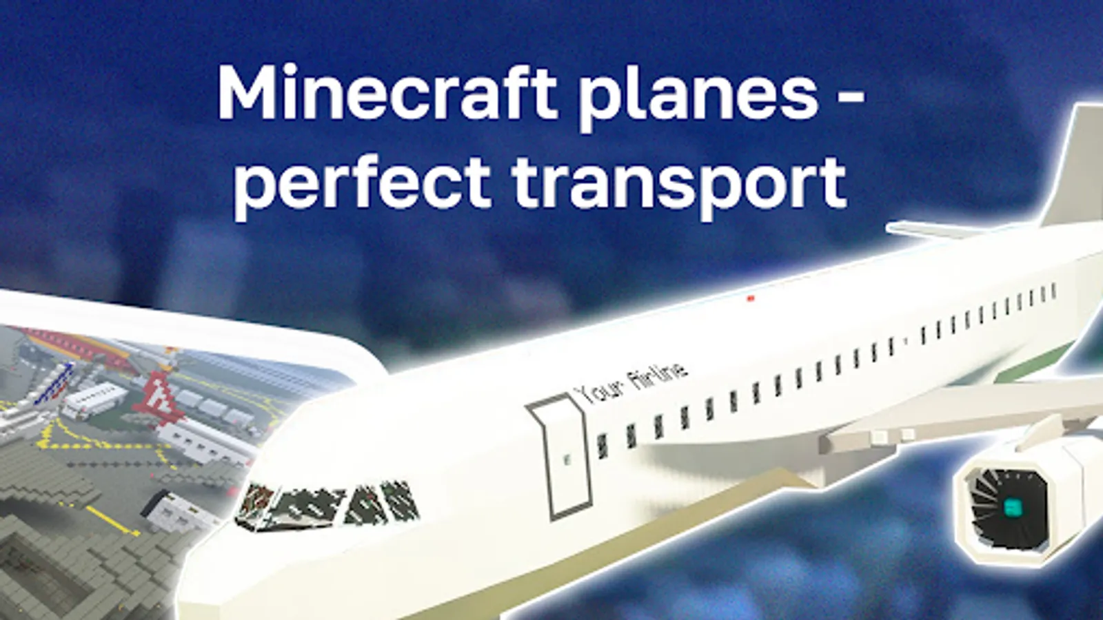 Vehicle Airport Mod for Minecraft PE Pocket Edition is an addon that adds updated airplanes transport to MCPE Bedrock, namely, MC Pocket Edition planes with 24 seats. This huge airplanes can be controlled. The seats on the vehicle planes are distributed in such a way that the 1st and 2nd seats are for pilots, the 3rd engineer's seat and the remaining 21 seats are for passengers. Now you can fly around the entire craft world of MCPE Bedrock using your plane mod for Minecraft, without obstacles and with people on board in survive mode.