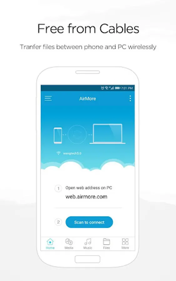 Scan the QR Code on AirMore Web and get connected at ease. (For now, local network connection only)