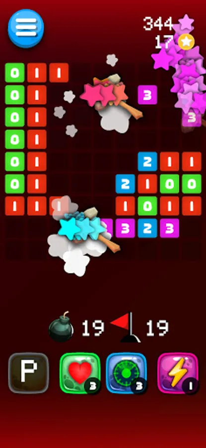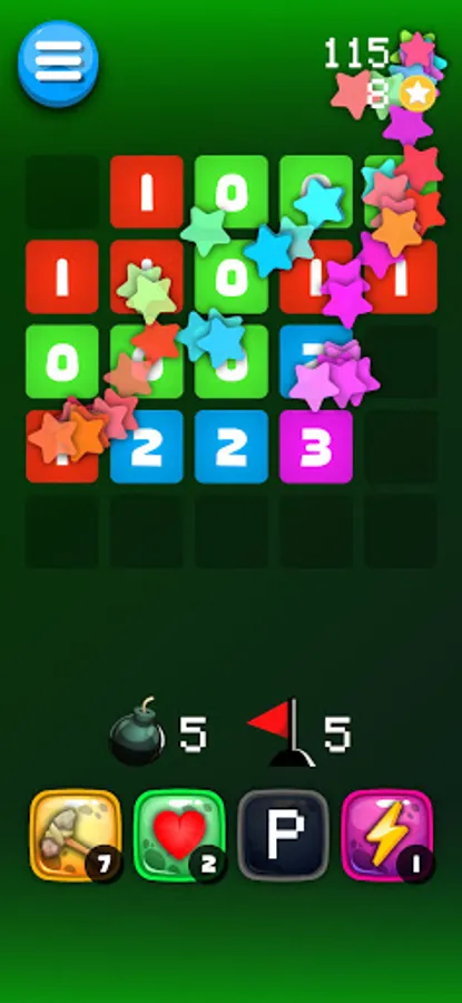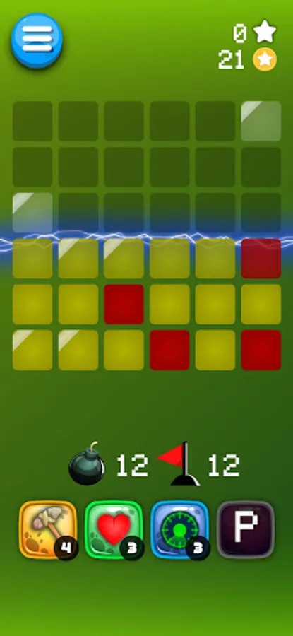 Here are some special powers to make it easier for you to detect landmines. They are the hammer, the life, the radar, the lightning.