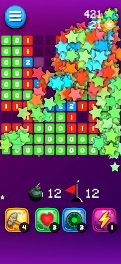 And if you know for sure that there is a landmine in a square, you can set a flag in that box by keep pressing it. This prevents the square from accidentally tapping, and at the end of a game, flags that are hoisted correctly (in a square with a landmine) receive extra points. You can win a match, once you have discovered all the landmines. At the end of the game, you will be given a special gift. If you, unfortunately, triggered a square with a landmine, the match will be lost and ended.