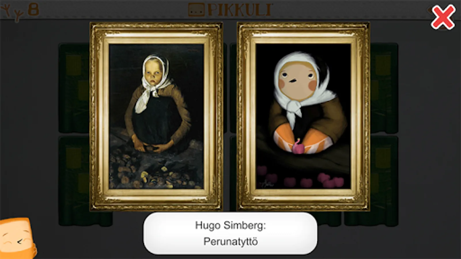 Can you help Privy combine original work of art and pikkuloidun version in a fun memory game? Memory game solutions enable you to learn a little more about the book and the artist. In addition, you can search for secret details, as well as the museum building inside and out.