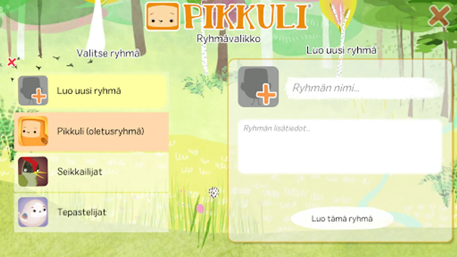 Developed around the familiar Pikkuli animated character from television, the app is primarily intended for use in a group on large tablets or multi-touch screens. The application is also suitable for home use and use on a mobile device.