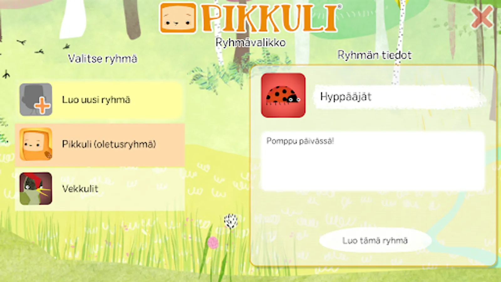 Developed around the familiar Pikkuli animation character on TV, the app is intended primarily for group use on large tablets or multi-touch screens. The application is also suitable for home use and use on a mobile device.