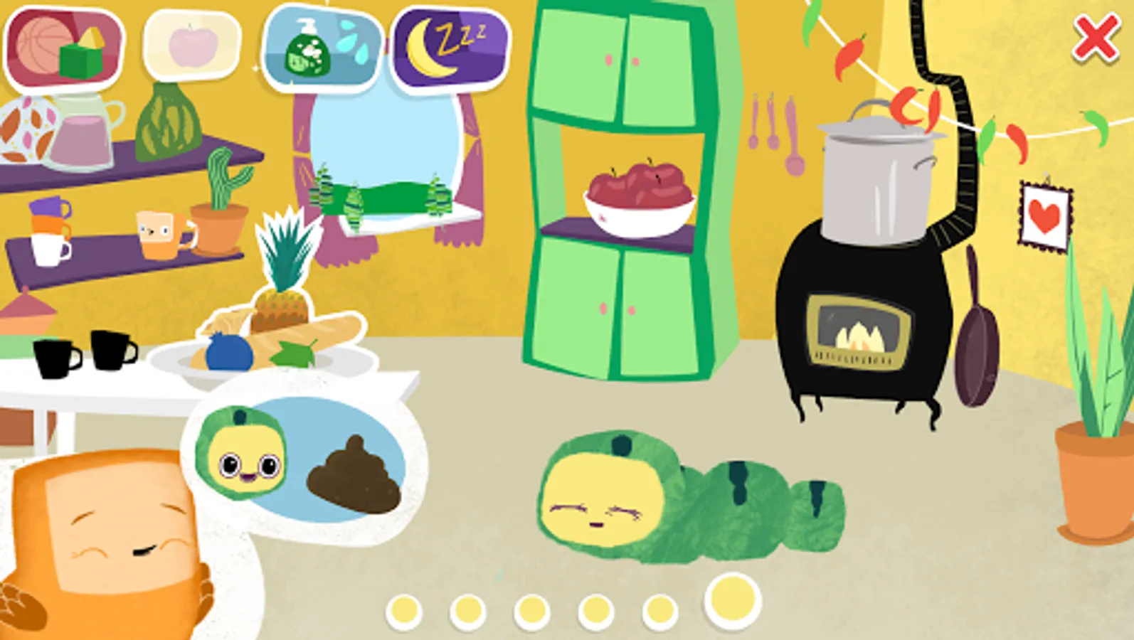 In this game based on the Pikkuli children’s animation series you get to help with raising the pet caterpillar, Toto, from an egg to a curious wriggler! Take care of Toto and play with him to help him grow longer! You can feed him tasty foods, stack blocks, play games, help with going potty and tuck him to bed for sleeping. The more things you do together the more activities you unlock!