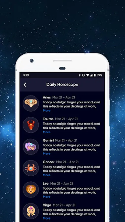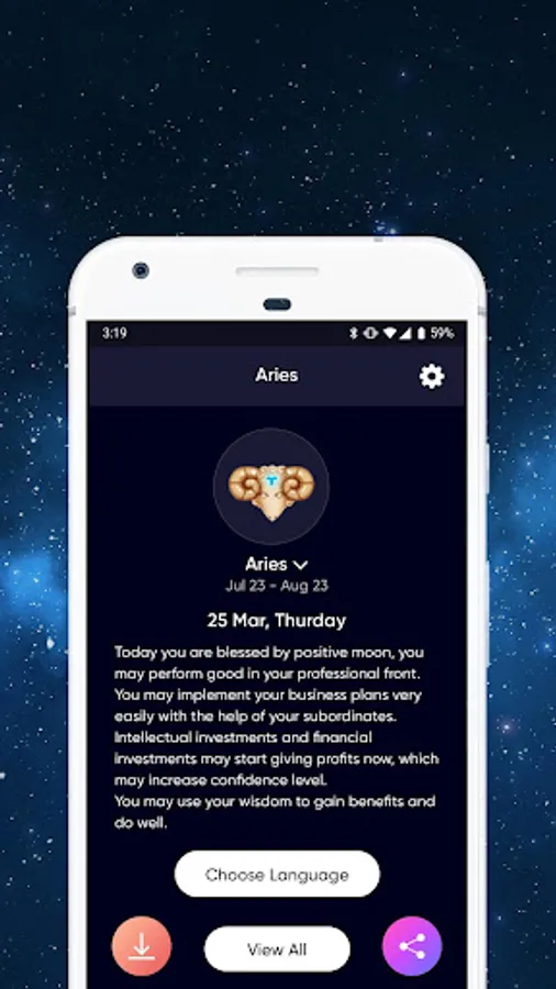 You can Save daily horoscope for all zodiac signs and Share it with your friends on social media. This app is very easy & simple to use for every user by just selecting any zodiac sign.