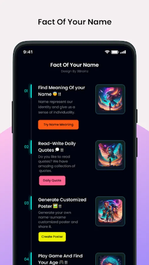 Fact of Your Name is a totally free android application. It'll help you to check what is behind your name, what is the numerology of your name.