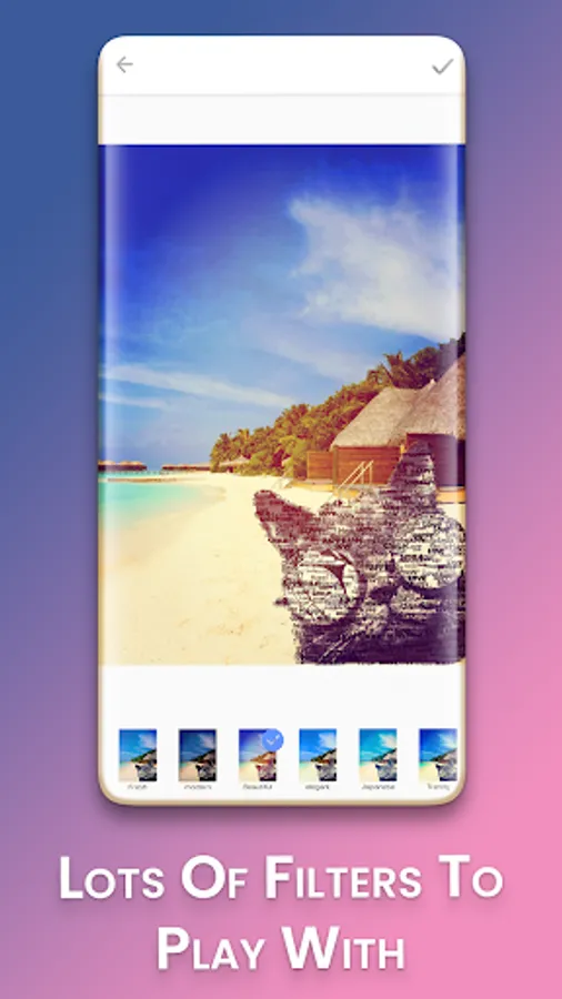 - Take your photos to the next level with a simple photo editor. Apply various filters to enhance your photo along with typography effect.