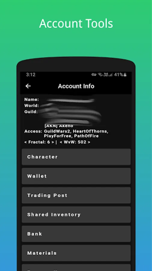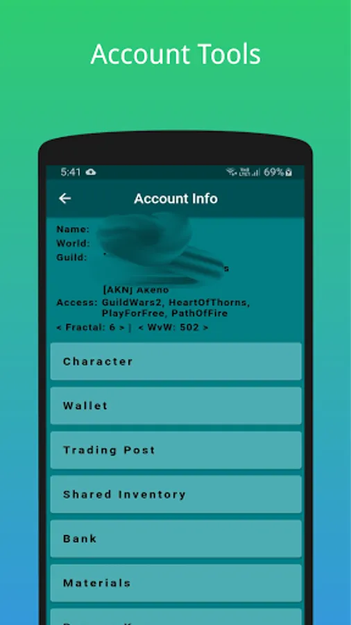 • Camera: Used for scanning the Guild Wars 2 API Key (QR Code) from the ArenaNet Official Account website