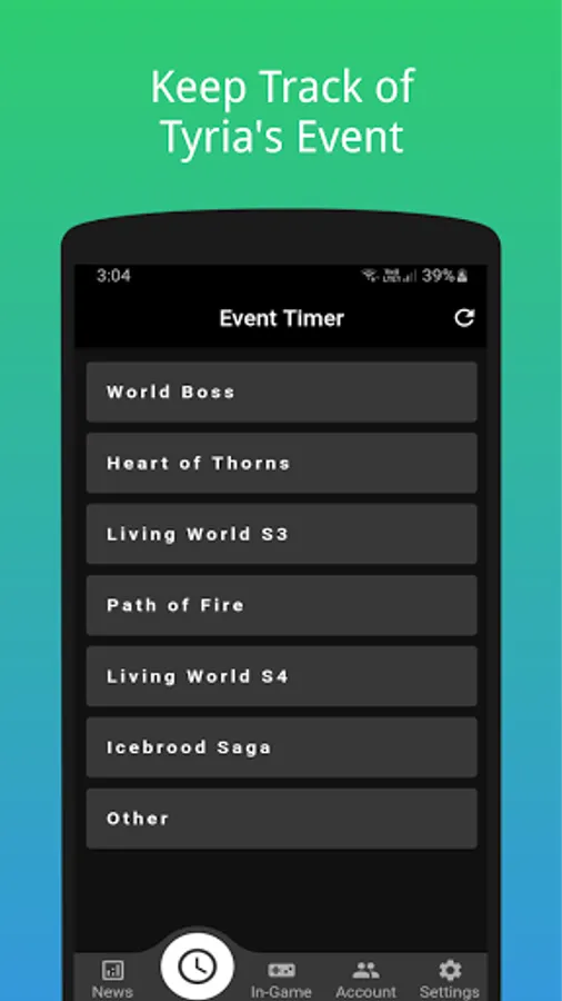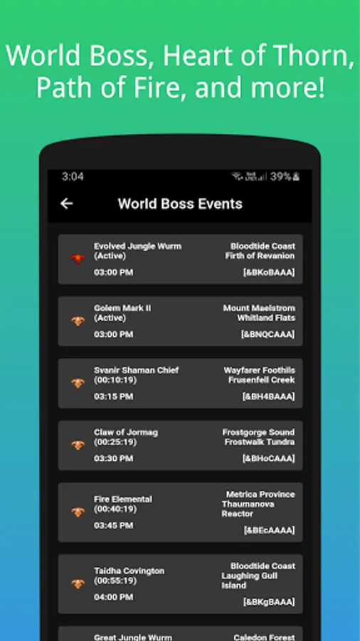Never miss any Meta Event such as World Boss, Heart of Thorns and Path of Fire using this app Meta Event Timer.