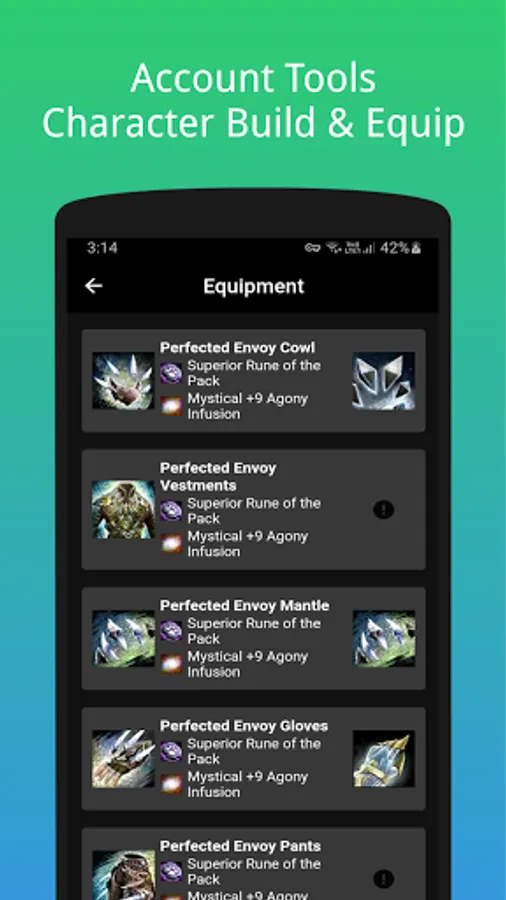 • Character (Crafting, Build, Inventory, Equip, and Skin)