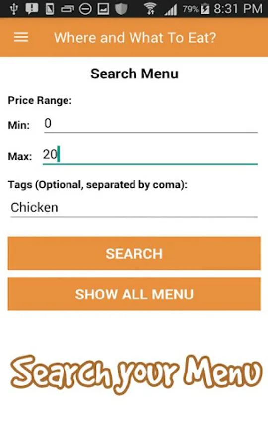 This app is here to help you to manage what food or menu to eat based on your budget.