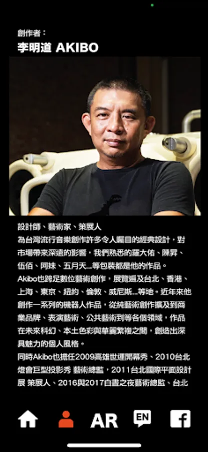 At the same time, Akibo also served as the artistic director of the 2009 Kaohsiung World Games opening show, the 2010 Taipei Lantern Festival giant projection show, the curator of the 2011 Taipei International Graphic Design Exhibition, the 2016 and 2017 Day and Night Artistic Director, the Taipei World Universiade Closing Creative Director, and the 2019 Taipei Lantern Festival plan. Exhibitors.