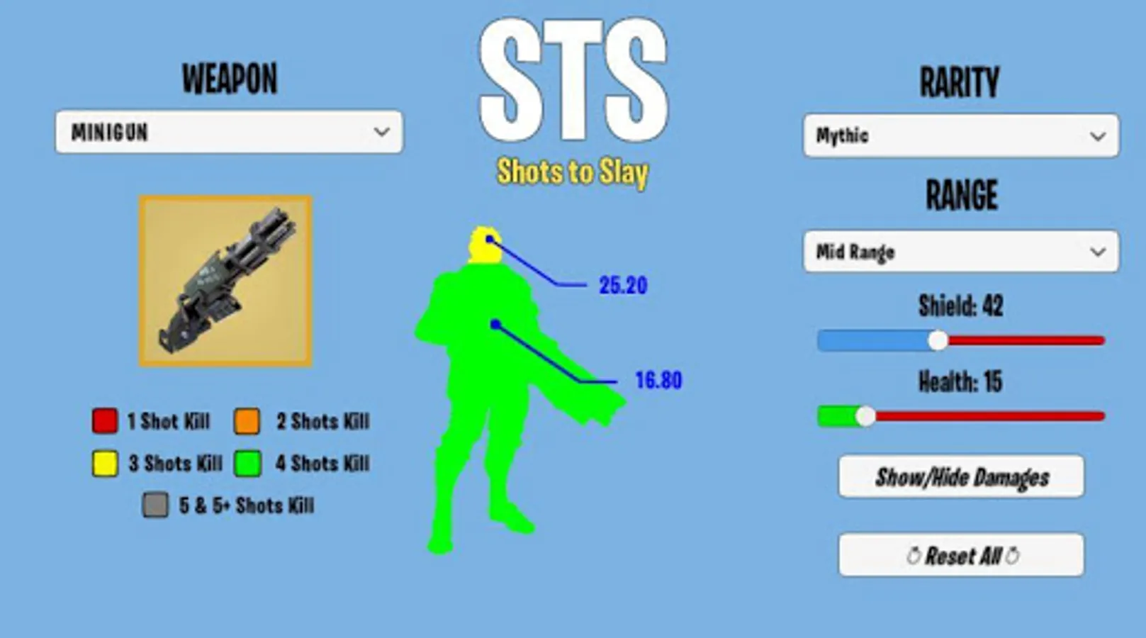 This application gives you really simple solution. You just select the weapon, health and shield it is done!