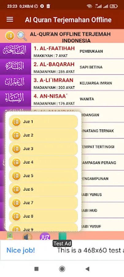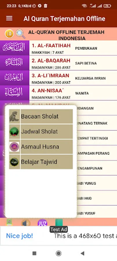 Digital Al Quran with Indonesian translation and audio mp3 murattal full, 114 surahs or 30 juz without restrictions. Can be read offline as well as a user friendly interface.