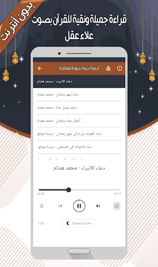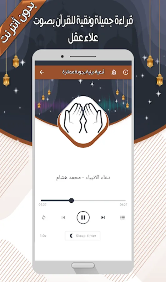 The Alaa Akl - Quran without Internet application allows you to hear all the surahs of the Noble Qur’an in addition to supplications through your mobile phone or device