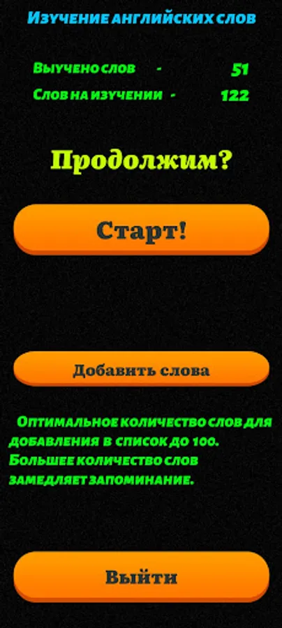 Teacher of words. Learning English words is easy. Expand your vocabulary quickly and easily! No ads and annoying videos. Just add unlearned words or phrases to the program, pronunciation and translation, and in your free time from work or study, on the road or during a break, train them! After multiple answers (I know), the word is automatically deleted and marked as learned. The application also keeps statistics on the number of learned words and words in the study.