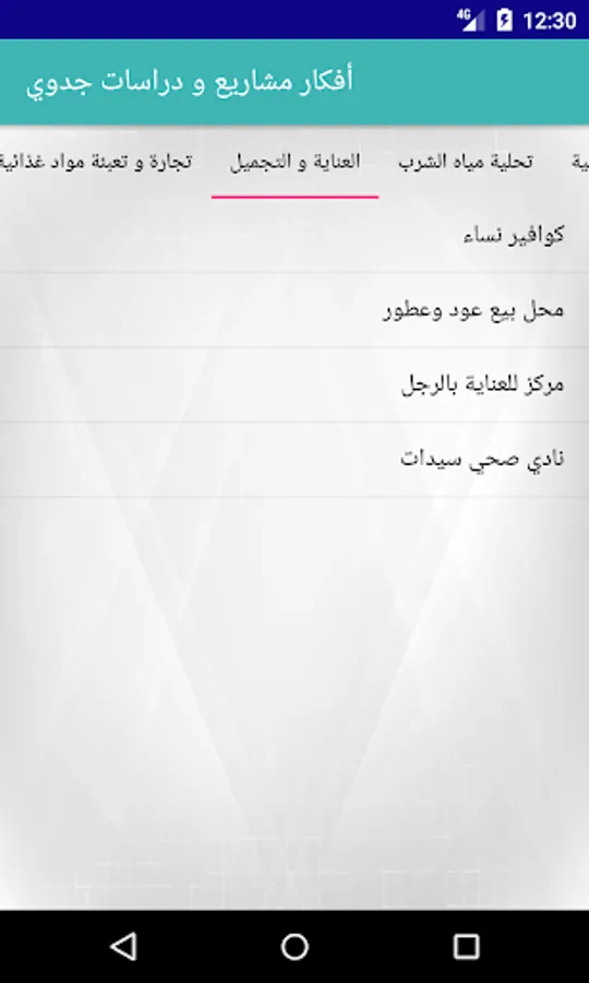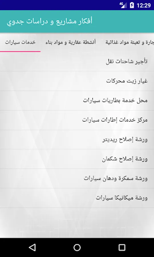 The application contains real feasibility studies for commercial projects, created by specialists in the Chamber of Commerce and Industry in Jeddah.