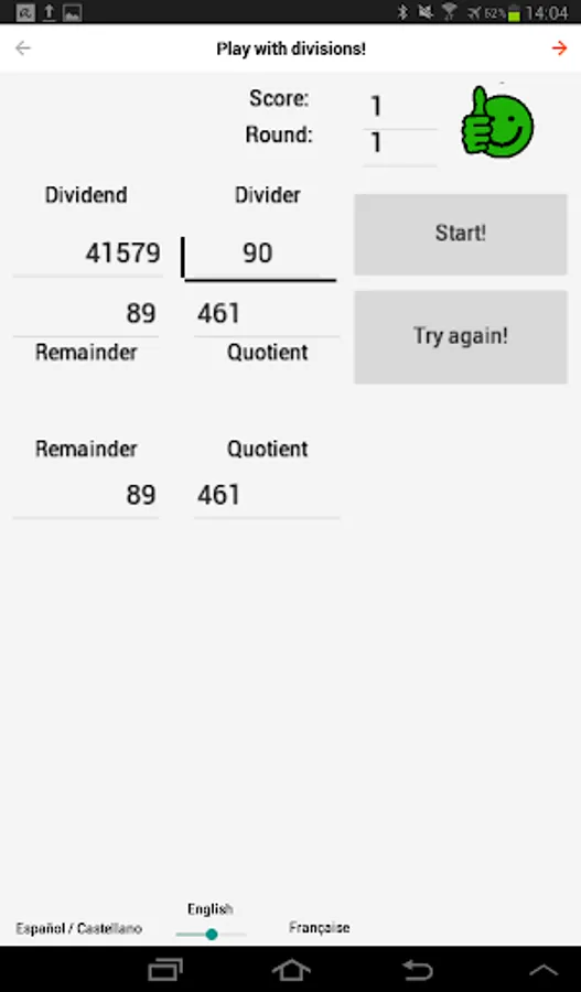 • Dividend and divider’s number of digits and number of decimals of divisions can be configured on the complete version.
