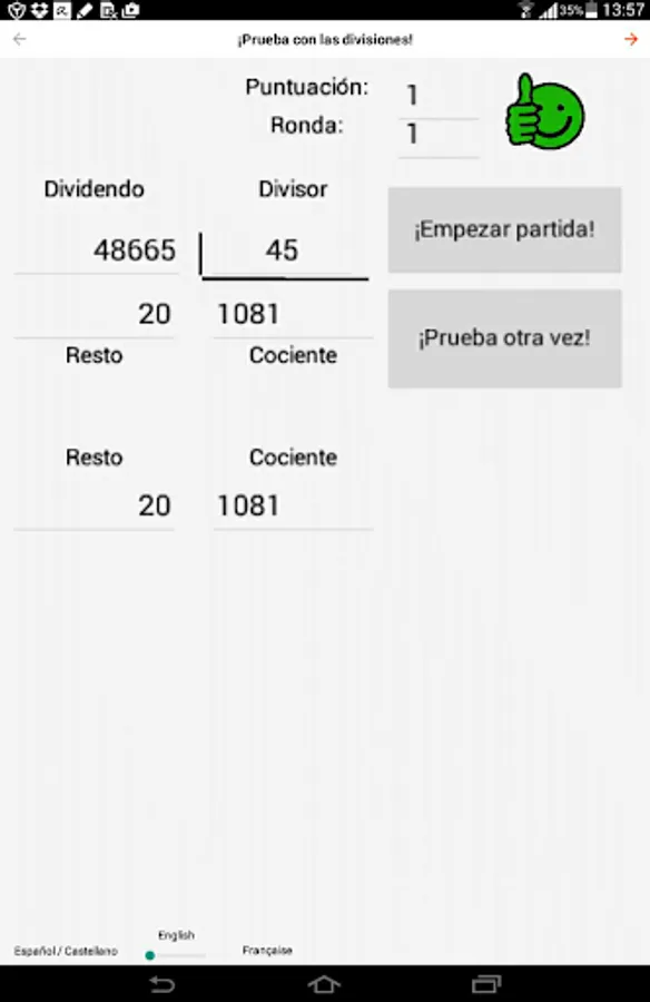- Complete version: Complete version with NO ads in which you can configure the number of digits of the dividend and divider, and the number of decimals in the dividend, divider, or quotient of the divisions. Cheap! (Cost less than inviting to a coffee). ;-)