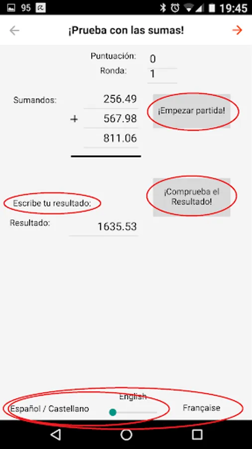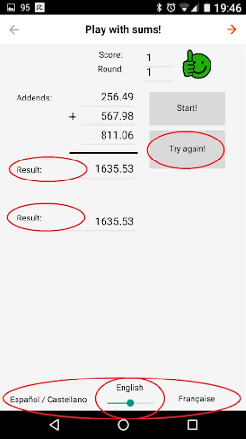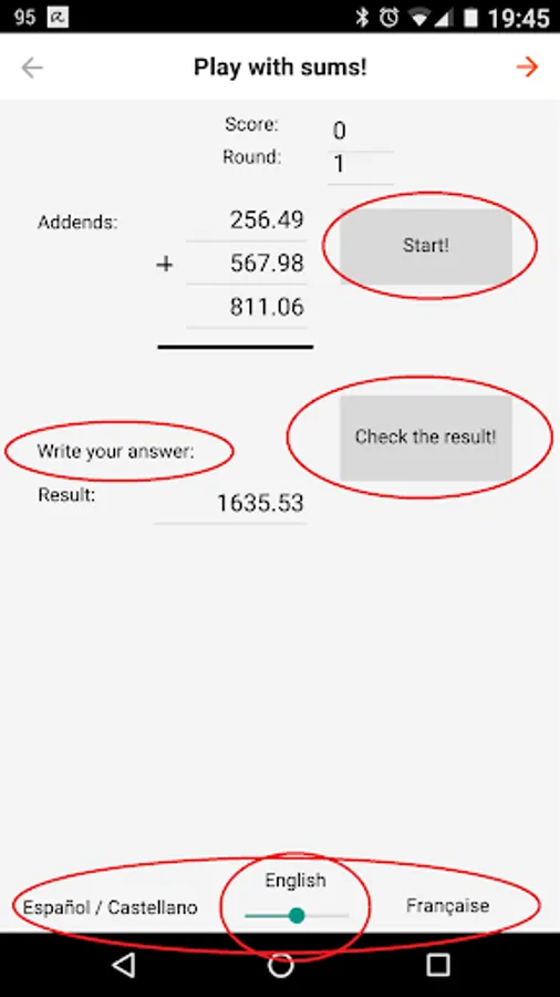 - Free / Demo: FREE, with NO ads, version limited to sums of 2 digits. I would suggest to start with this free version. Then, once you or your son is confident with them, go to the complete version, in which you can configure the number of digits of the addends, and the number of decimals.
