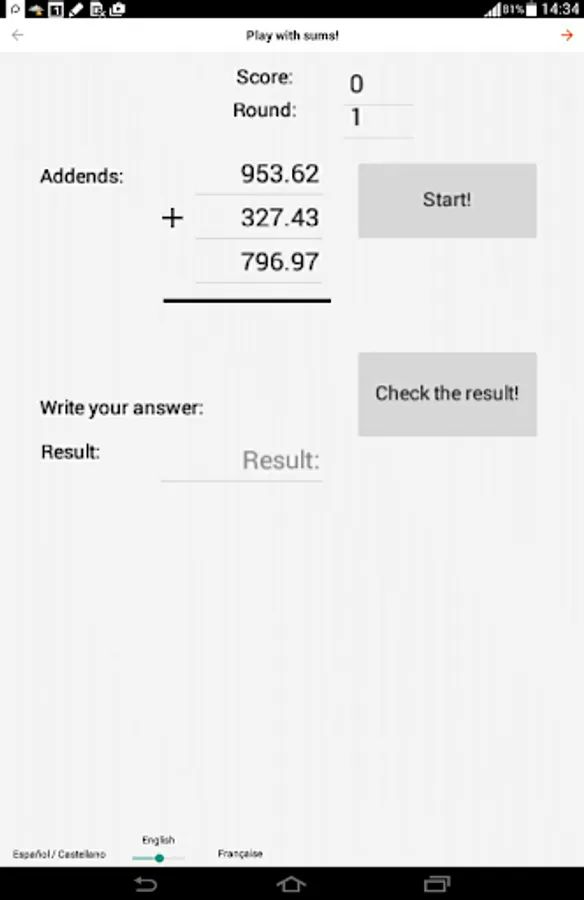 • Addends’s number of digits and number of decimals can be configured on the complete version.