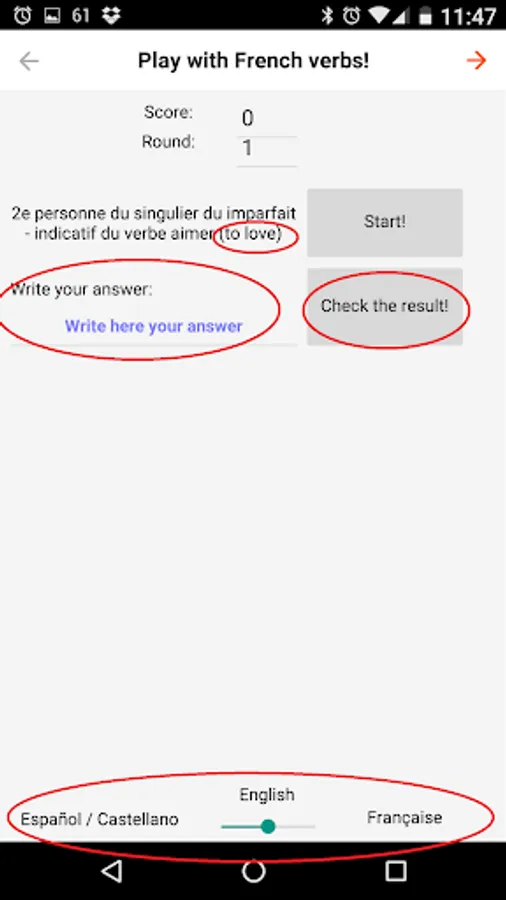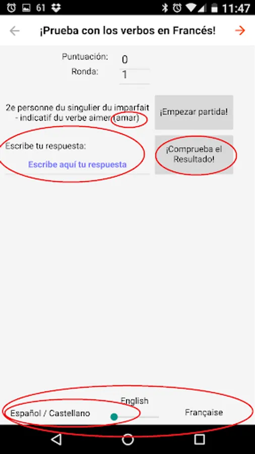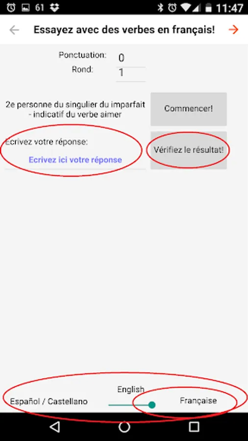 • Beware of the accents!!!: Remember that in school / college (in primary and in secondary), if you do not write the accents, the answer can be set as "bad": This app is not only useful to learn the French verbs tenses, but it's also useful to learn to write with accents (you get used to it very quickly, because if you do not put the accent, the app will not give you the answer as valid!).
