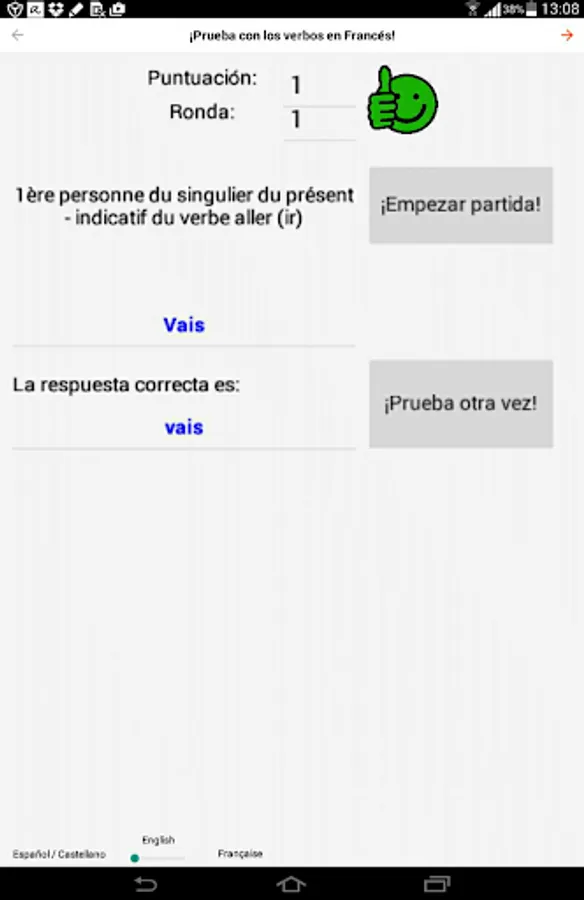 • This app is simply a game that replaces the typical "pass the lesson" with Q&A (questions and answers): The app asks the tenses and check your responses. Based on play and practice, you will learn the French regular and irregular verbs in all the tenses, as you learn at school / college (primary / secondary).