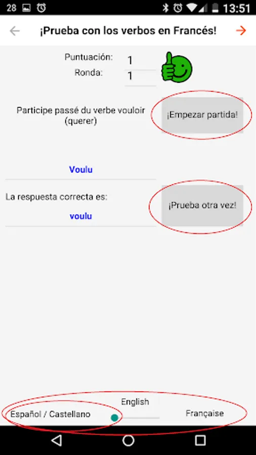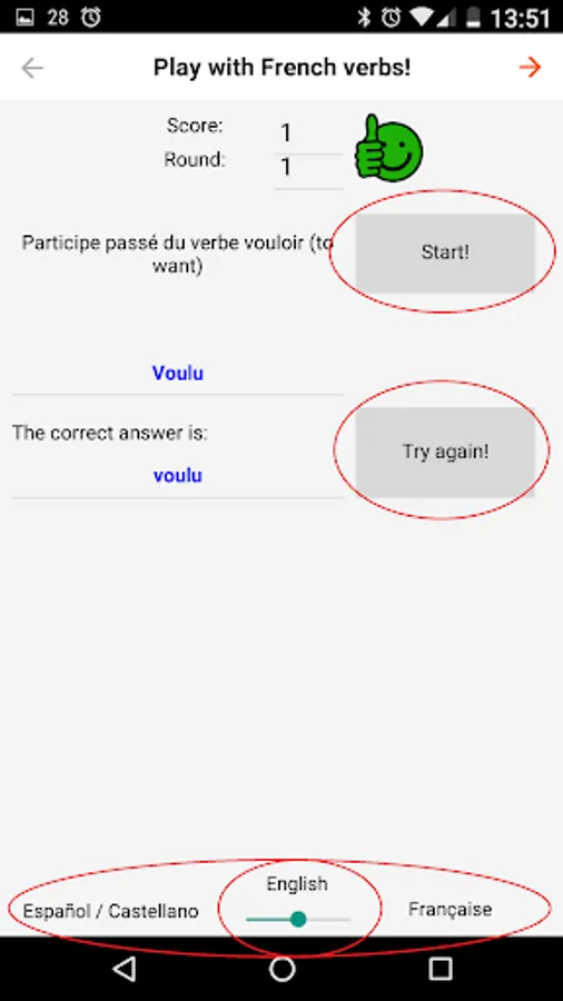 • Beware of the accents!!!: Remember that in school / college (in primary and in secondary), if you do not write the accents, the answer can be set as "bad": This app is not only useful to learn the French verbs tenses, but it's also useful to learn to write with accents (you get used to it very quickly, because if you do not put the accent, the app will not give you the answer as valid!).