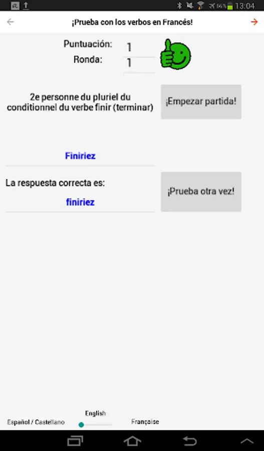 • This app is simply a game that replaces the typical "pass the lesson" with Q&A (questions and answers): The app asks the tenses and check your responses. Based on play and practice, you will learn the French regular and irregular verbs in all the tenses, as you learn at school / college (primary / secondary).