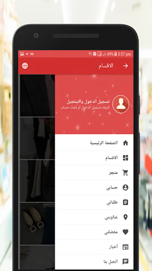 1 - The application of electronic shopping for Android phones with a beautiful user interface and stylish design and excellent performance with the possibility of creating a special account for the user and also by Google Account or Facebook E-mail with the possibility of connection with electronic payment systems.